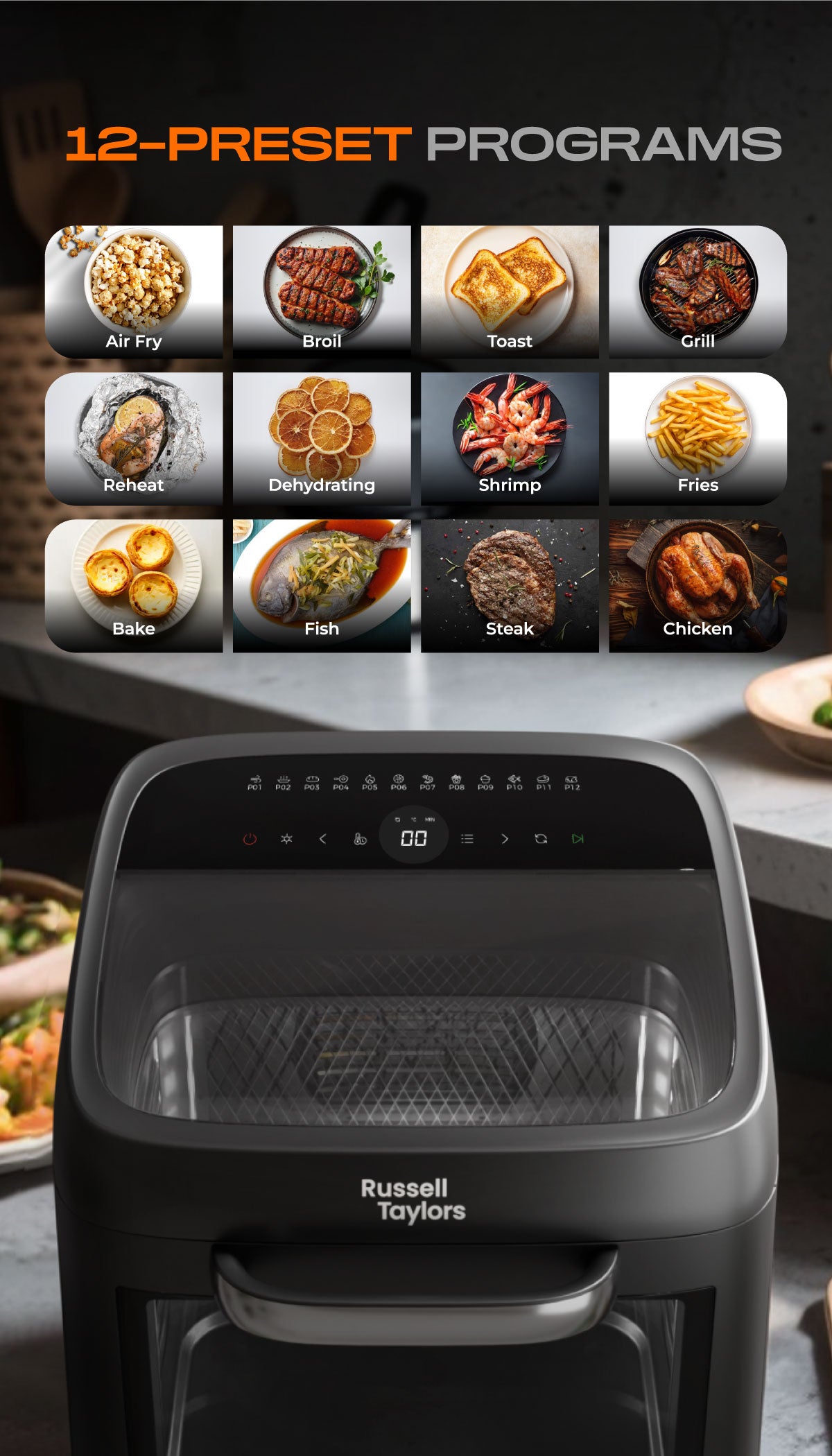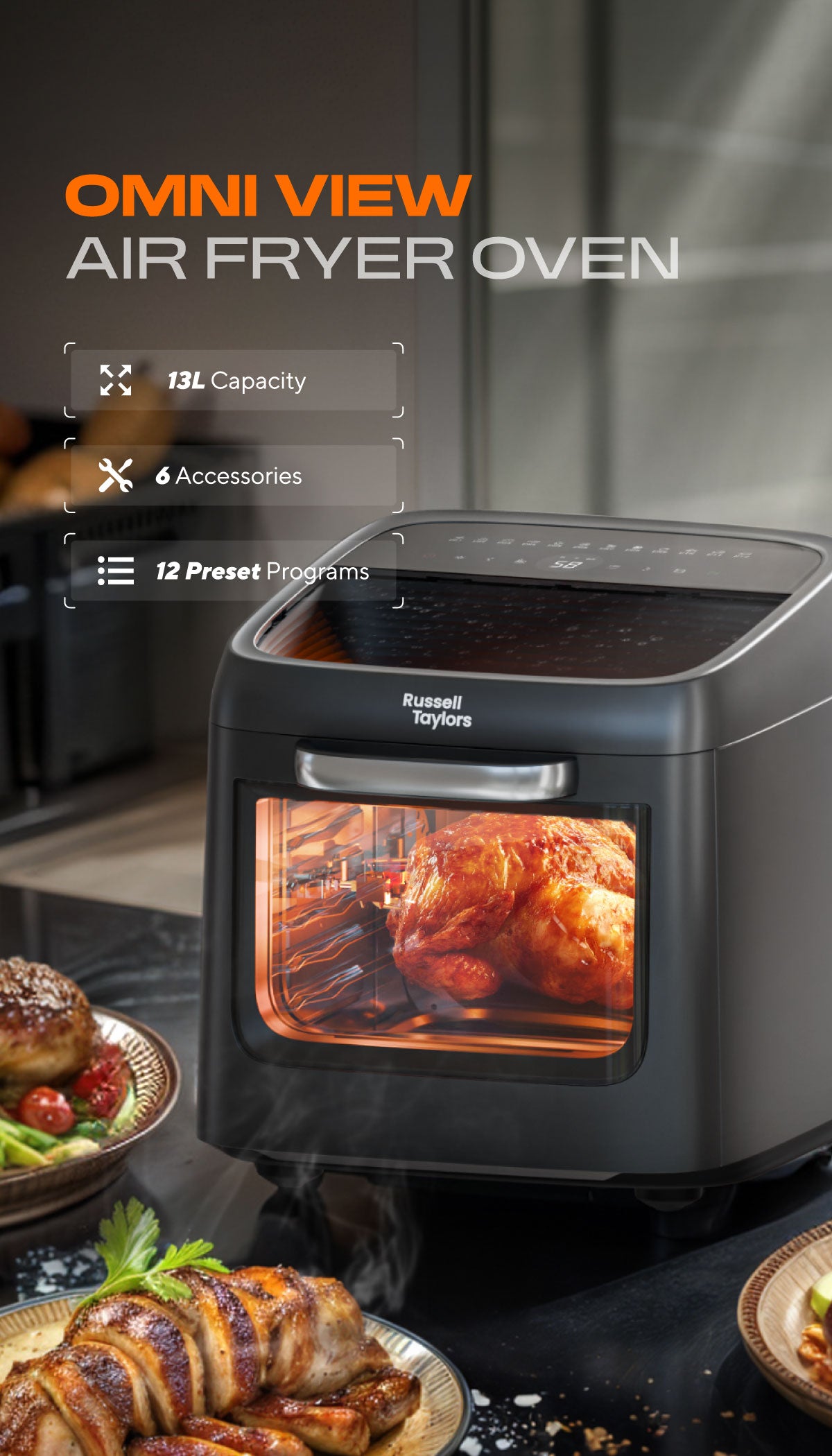 Russell Taylors Omni View Air Fryer Oven with Rotisserie (13L) AF-50