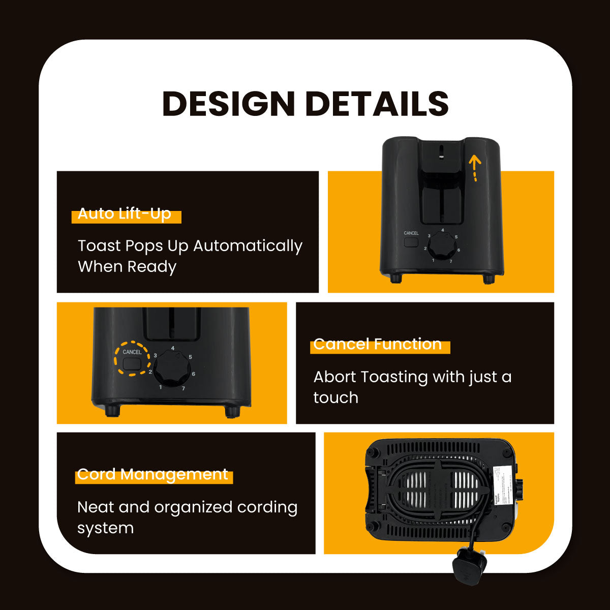 - With easy-to-use push-down toasting lever and non-slip feet. The crumb tray has a simple wipe-away surface for quick cleaning.