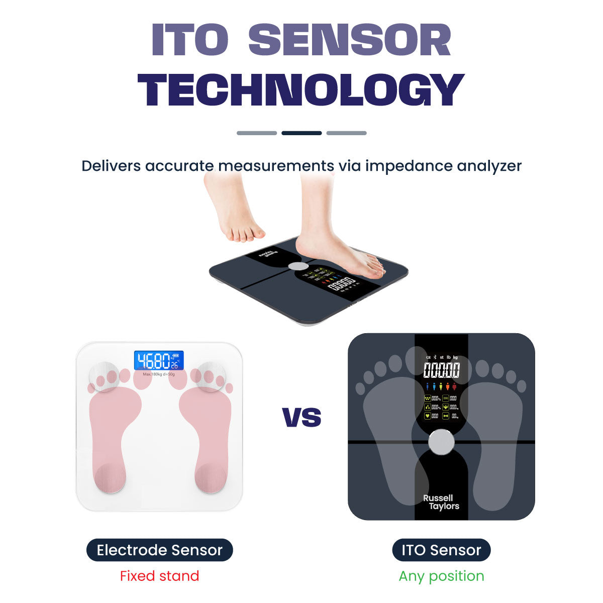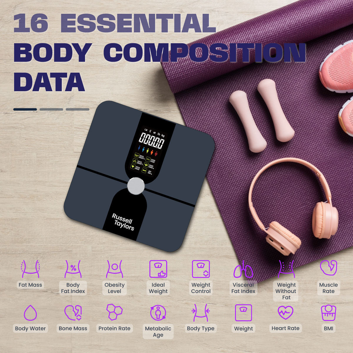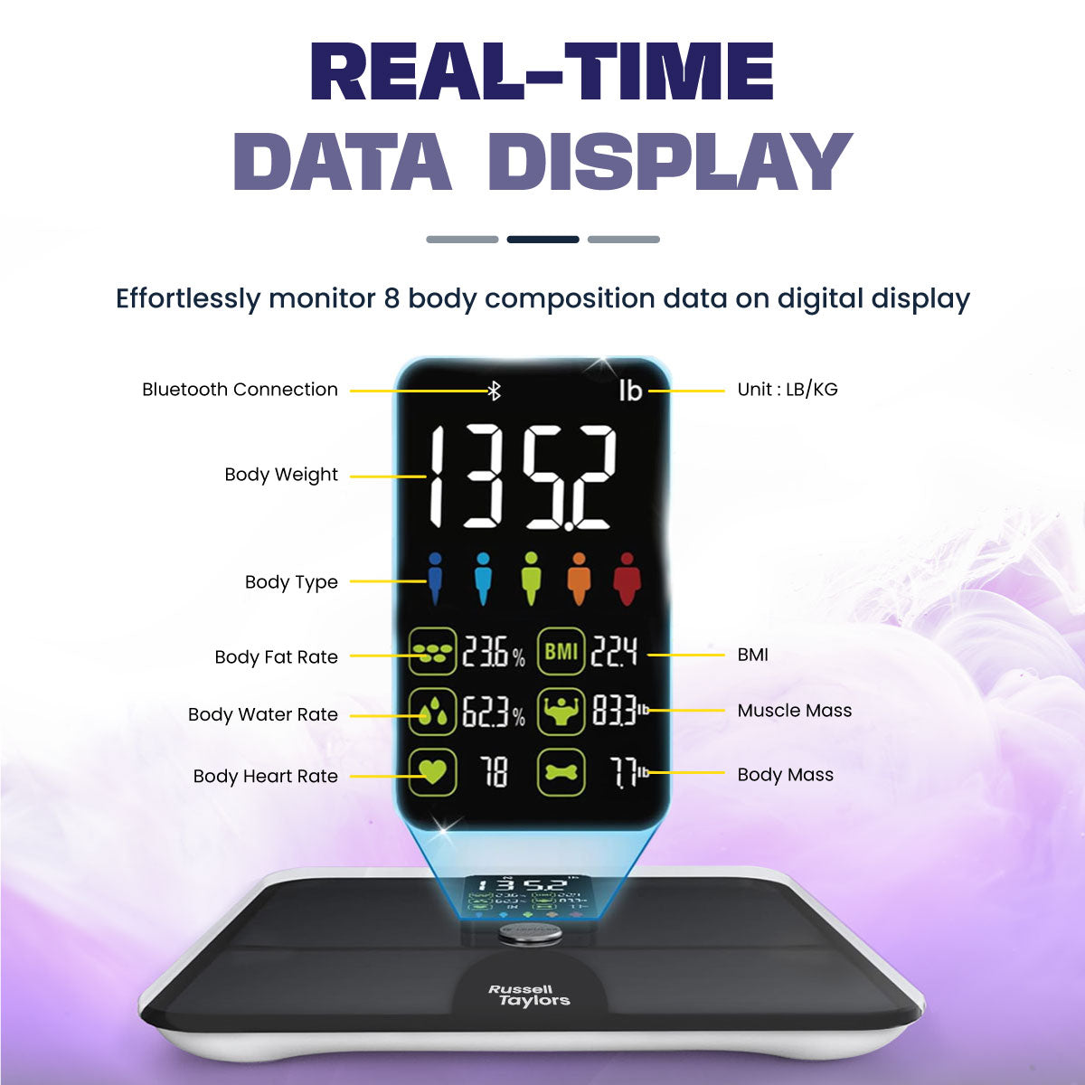 Russell Taylors Bluetooth Digital Body Composition Monitor Body Fat Weighing Scale BWS-20