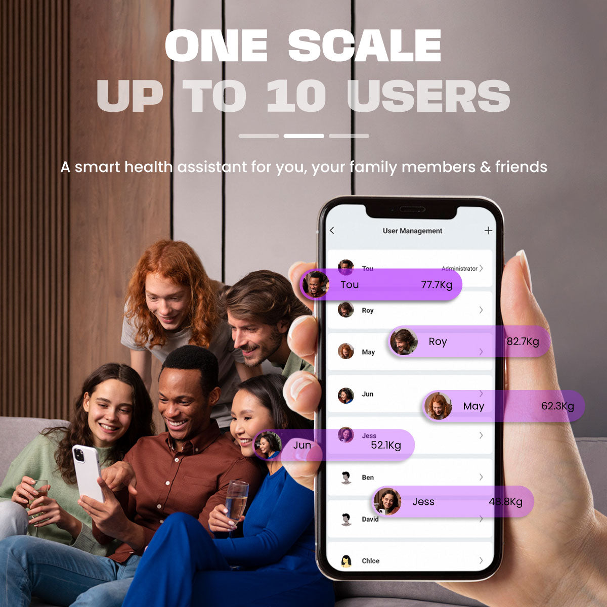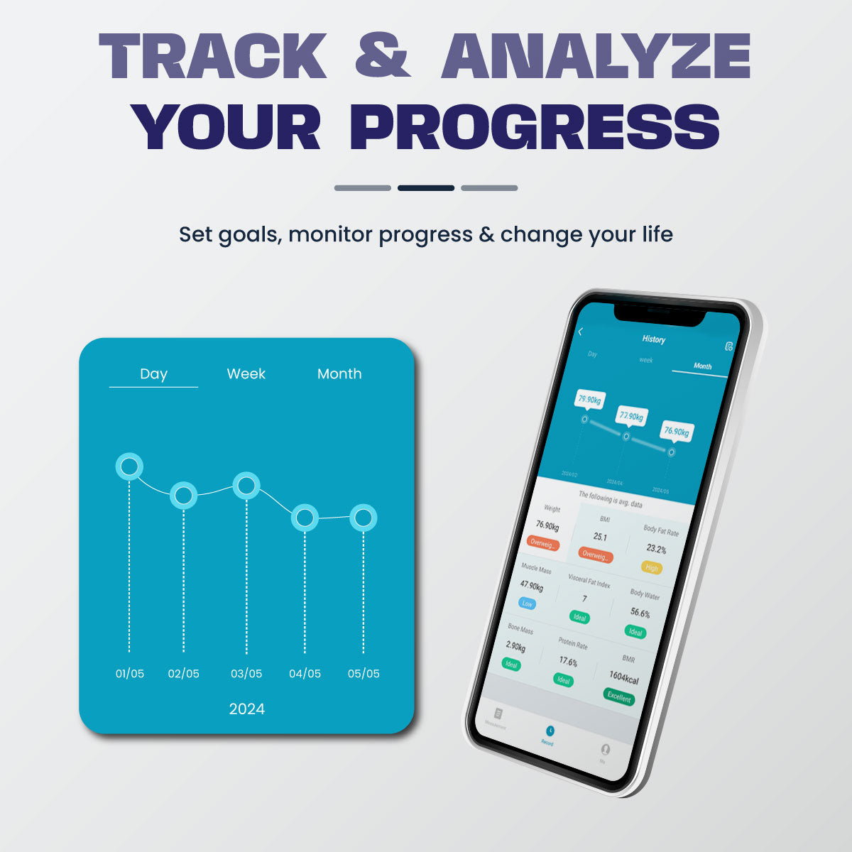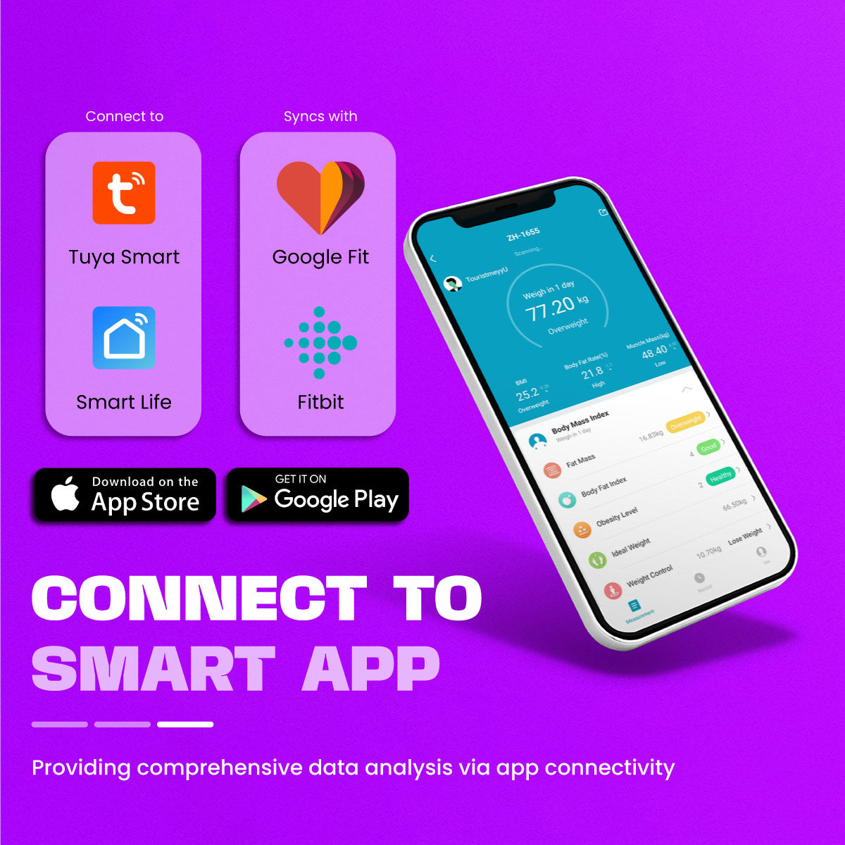 - Download the “TUYA” app to sync your smart scale to your phone and view detailed charts and trends over days, weeks and months!