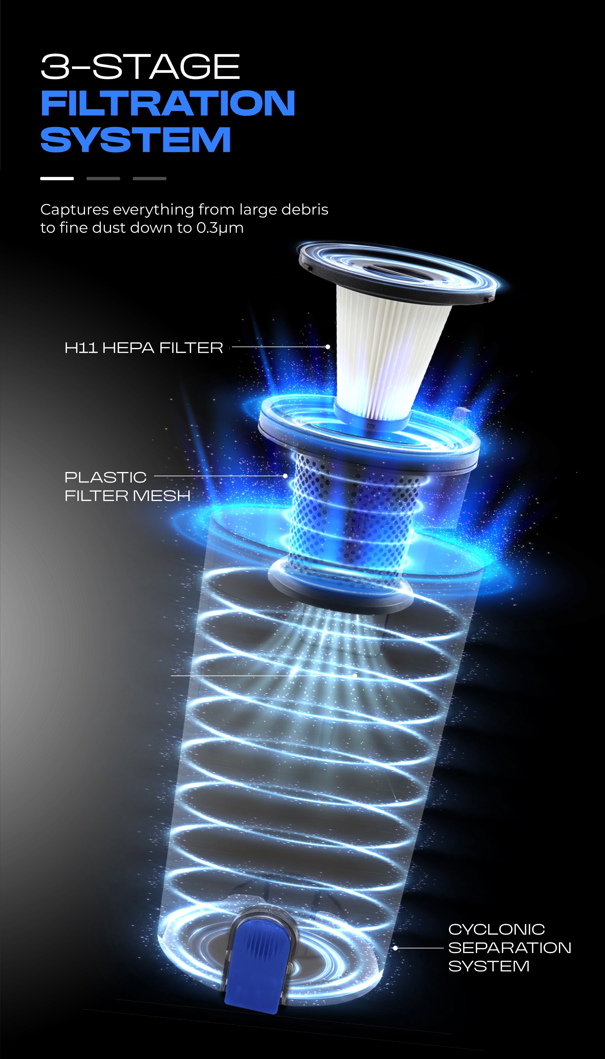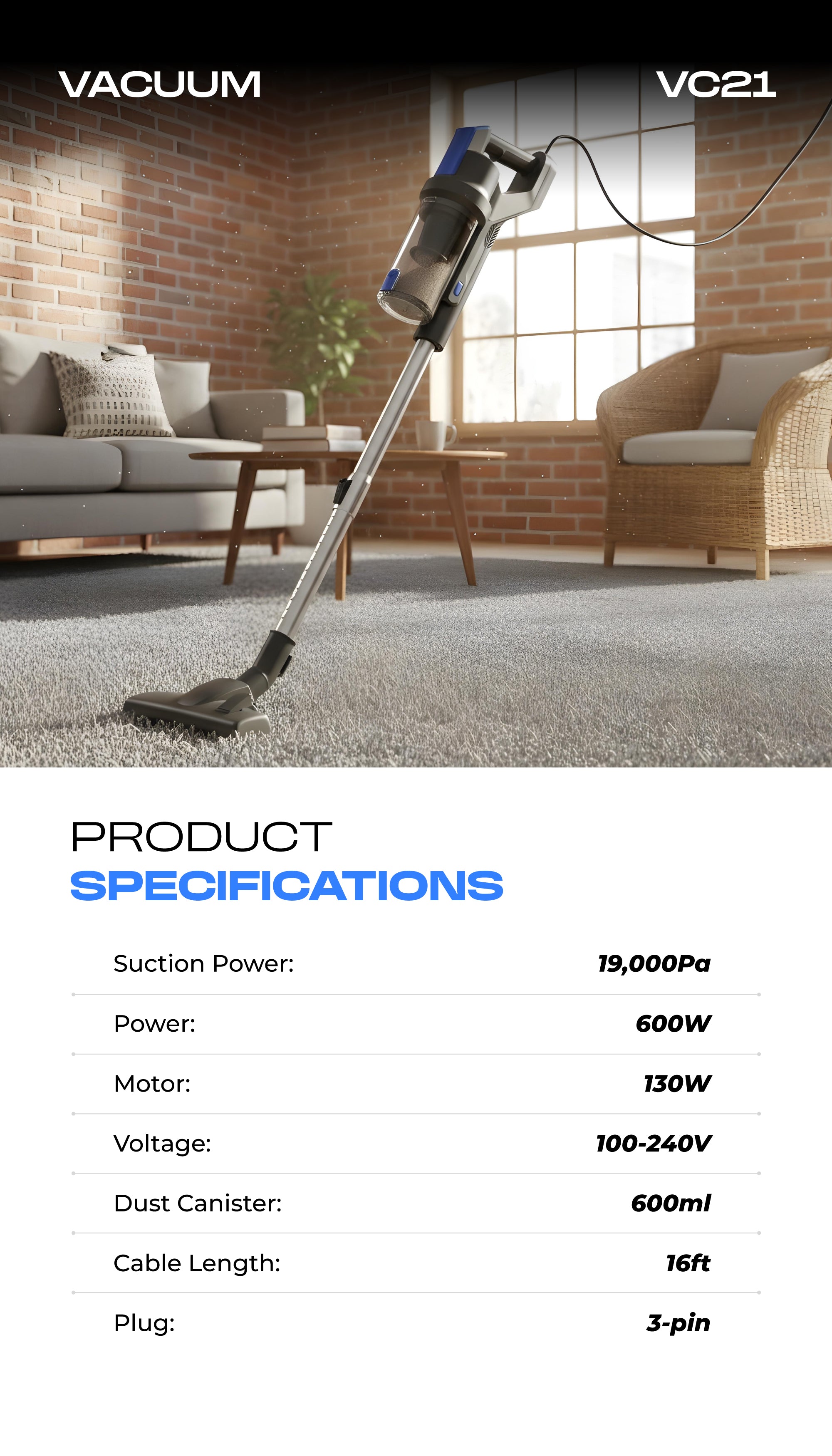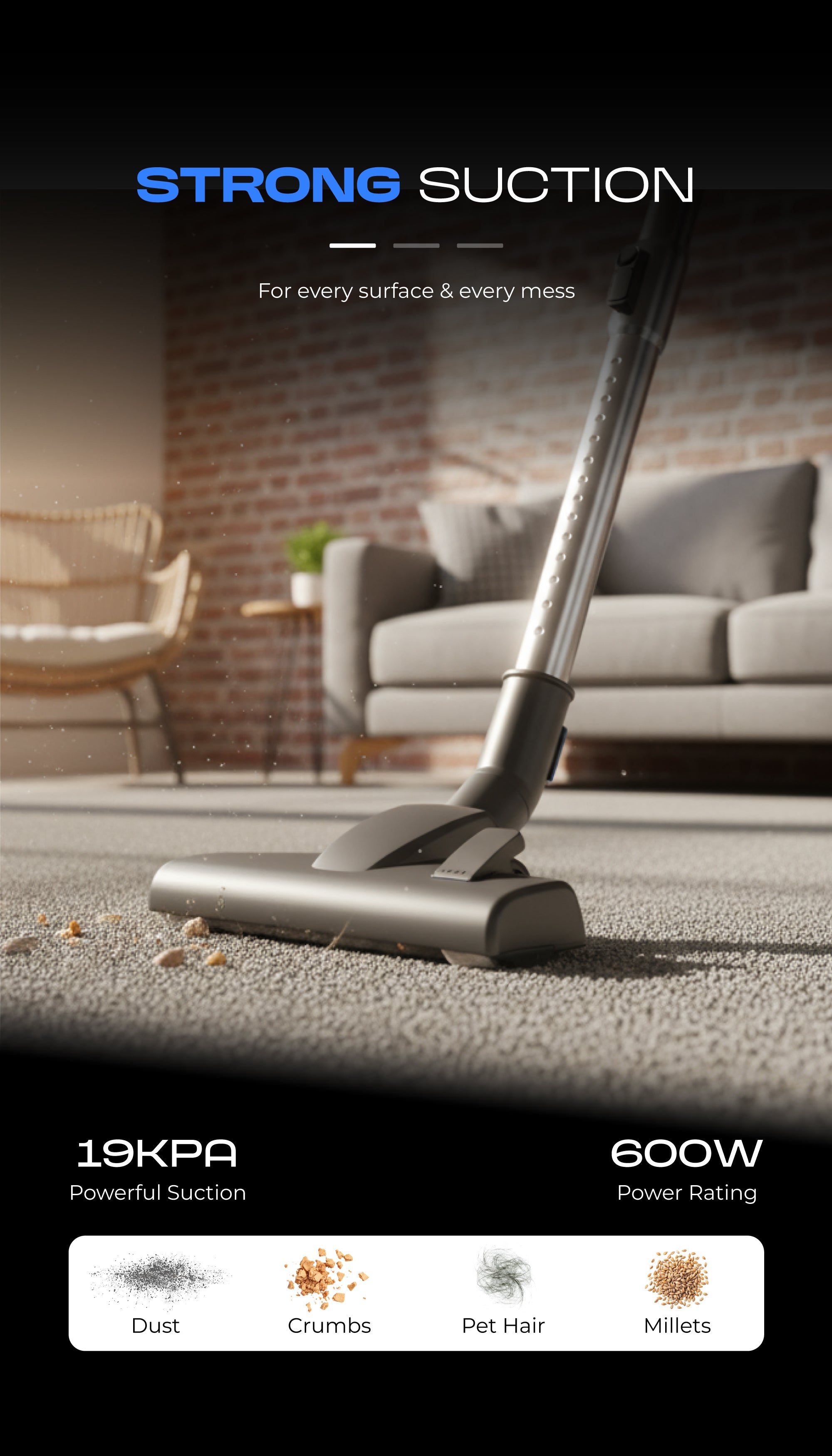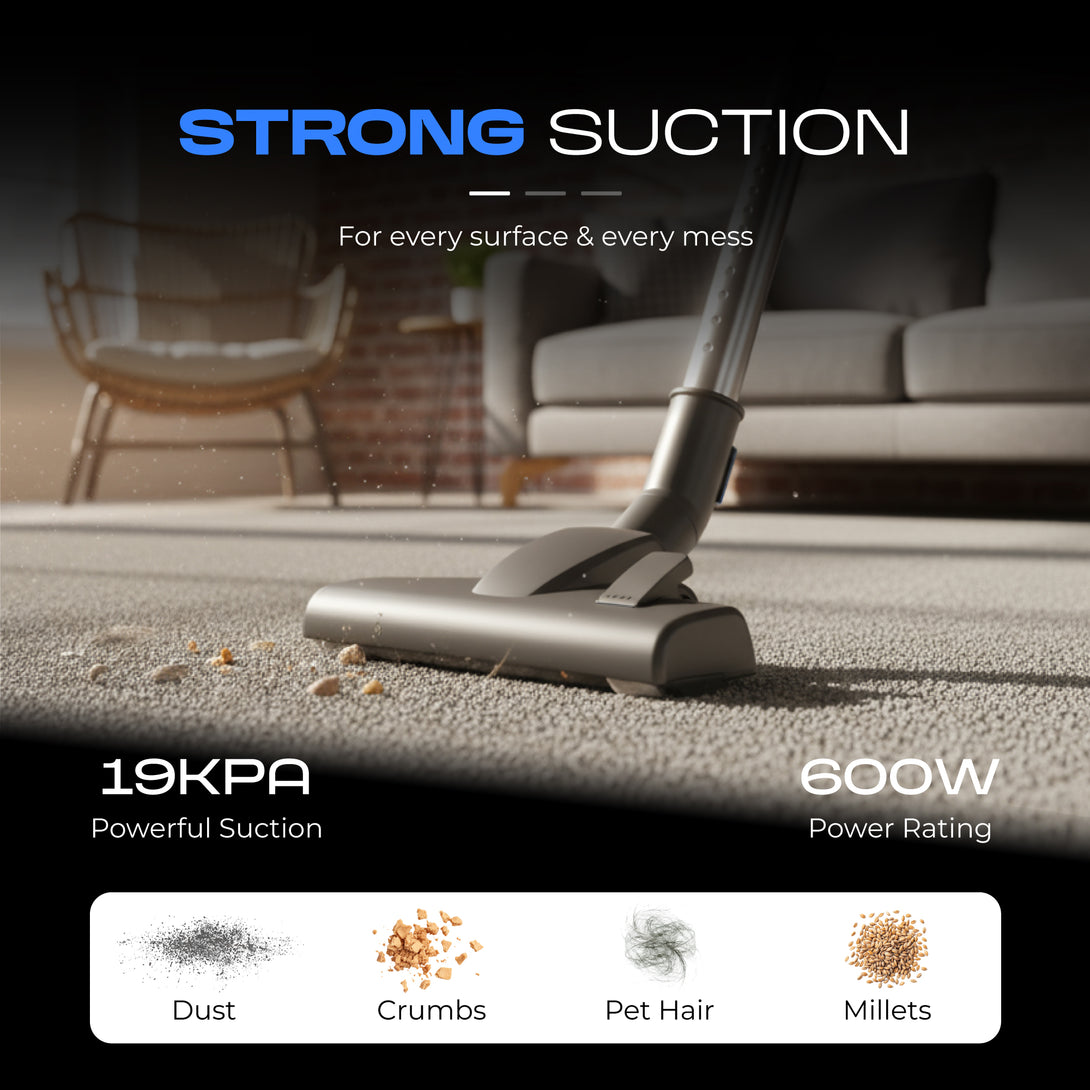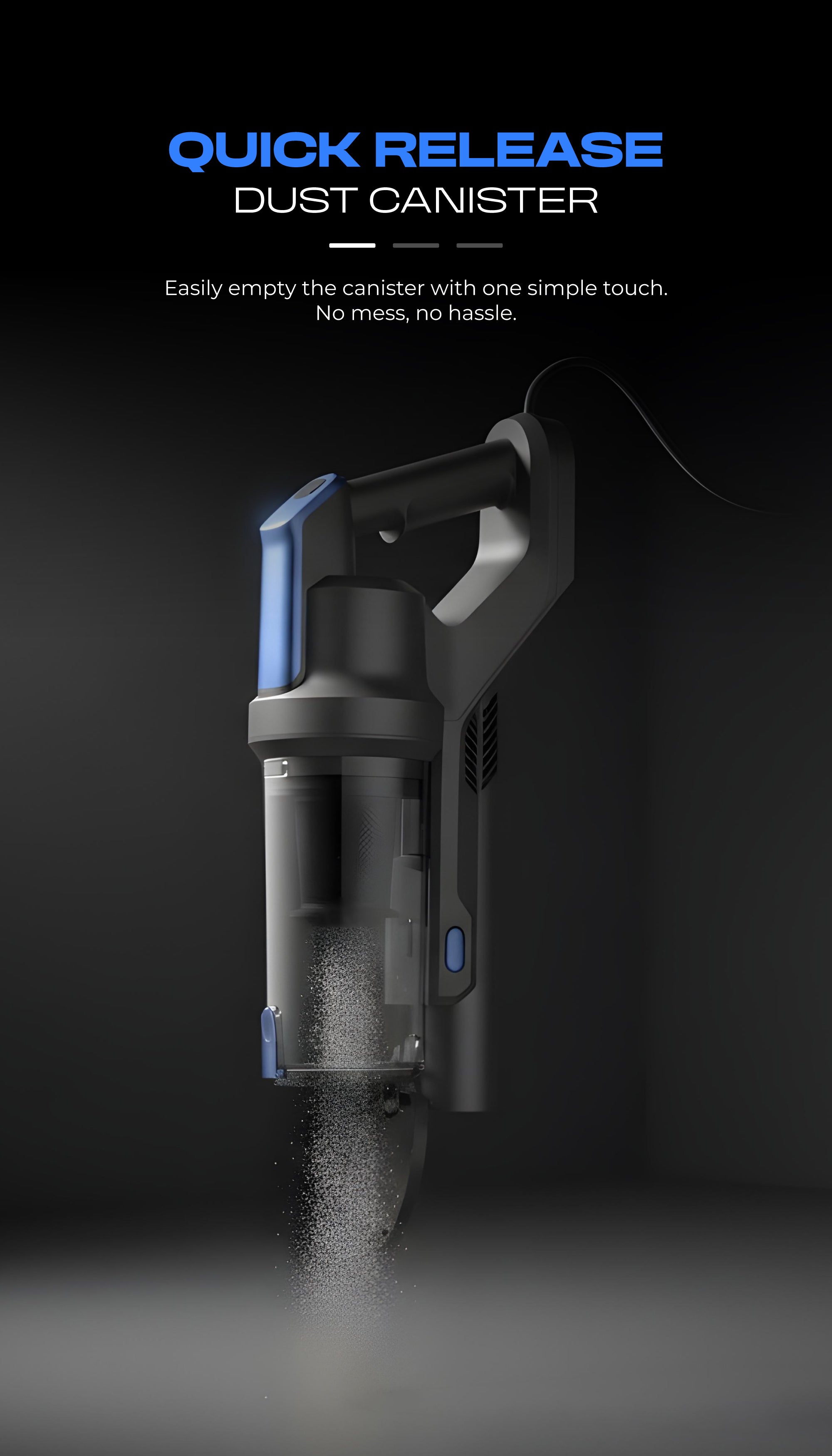- 600ml Dust Container – Compact yet large enough for continuous cleaning. Easy to empty and wash for everyday convenience.