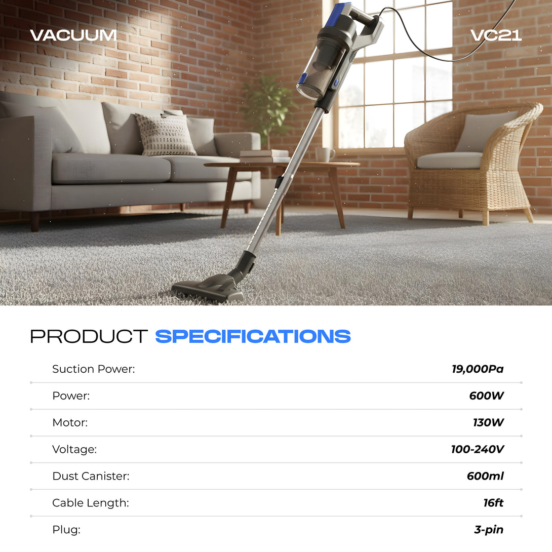 - Powerful 130W Motor – Delivers strong, consistent suction for effective cleaning on all floor types. Easily handles dust, crumbs, and daily messes with reliable performance.