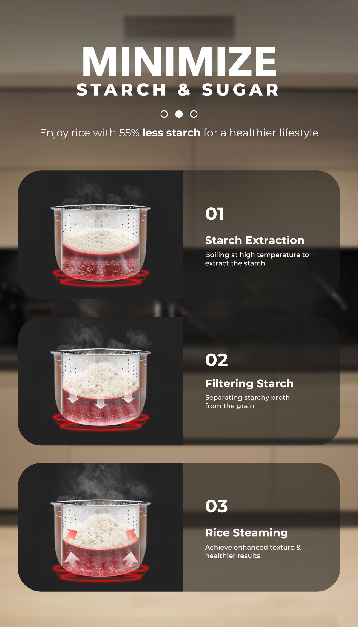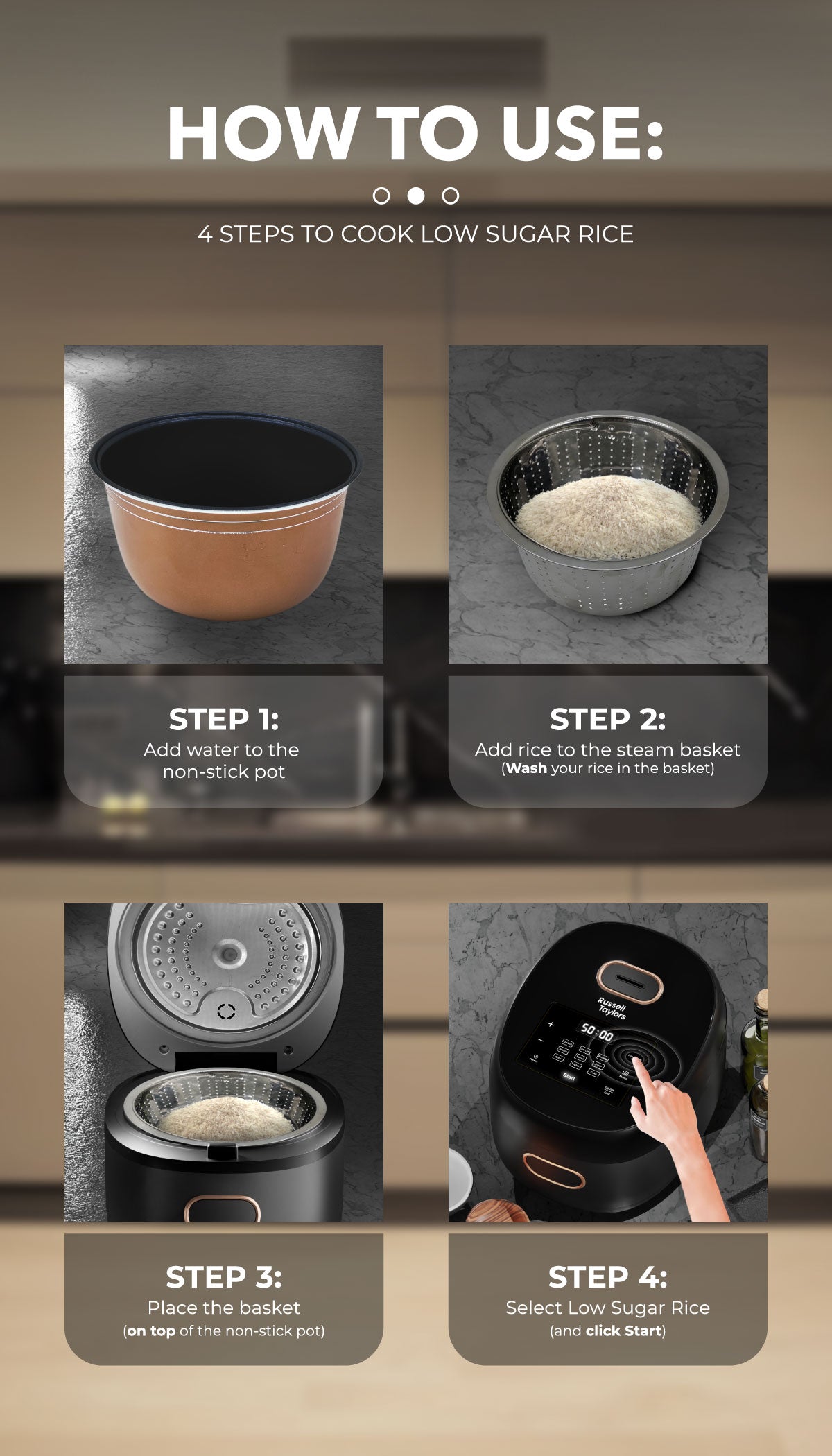 - Our Sugar Reducing technology reduces sugar in your rice without sacrificing flavour and texture.