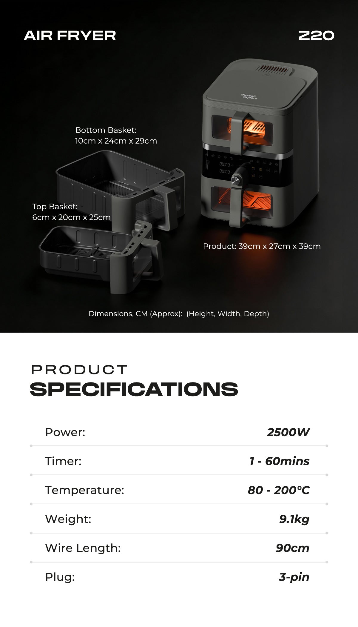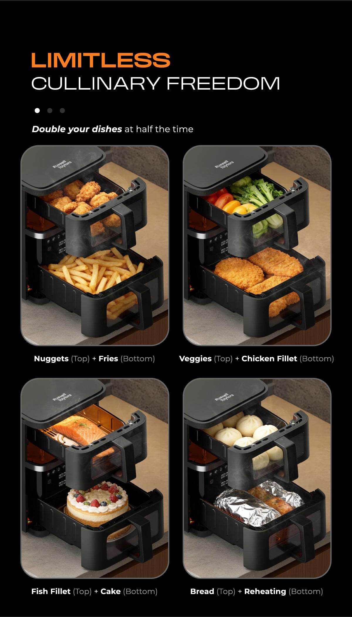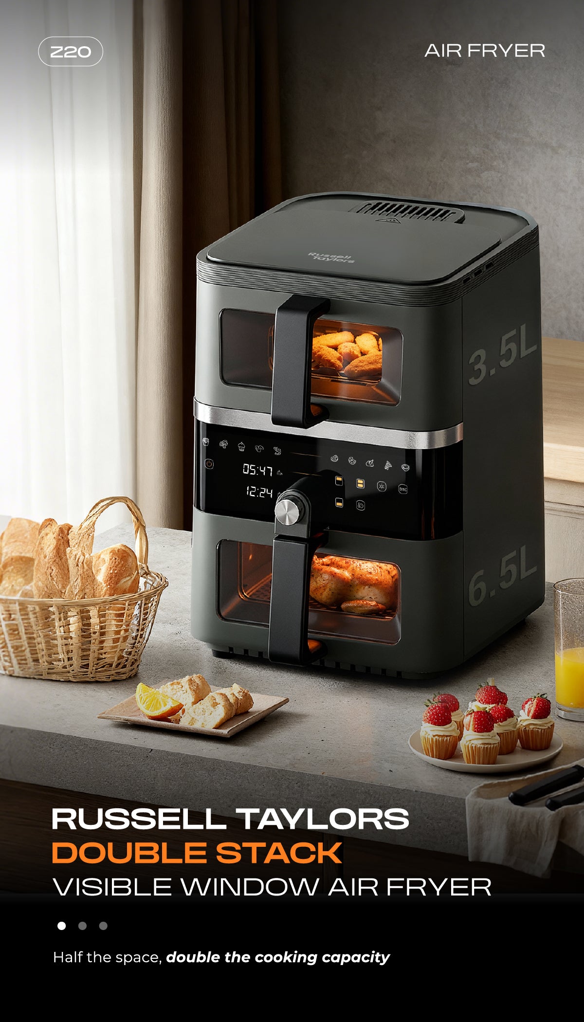 Russell Taylors Double Stack Visible Window Air Fryer (3.5L+6.5L) Z20
