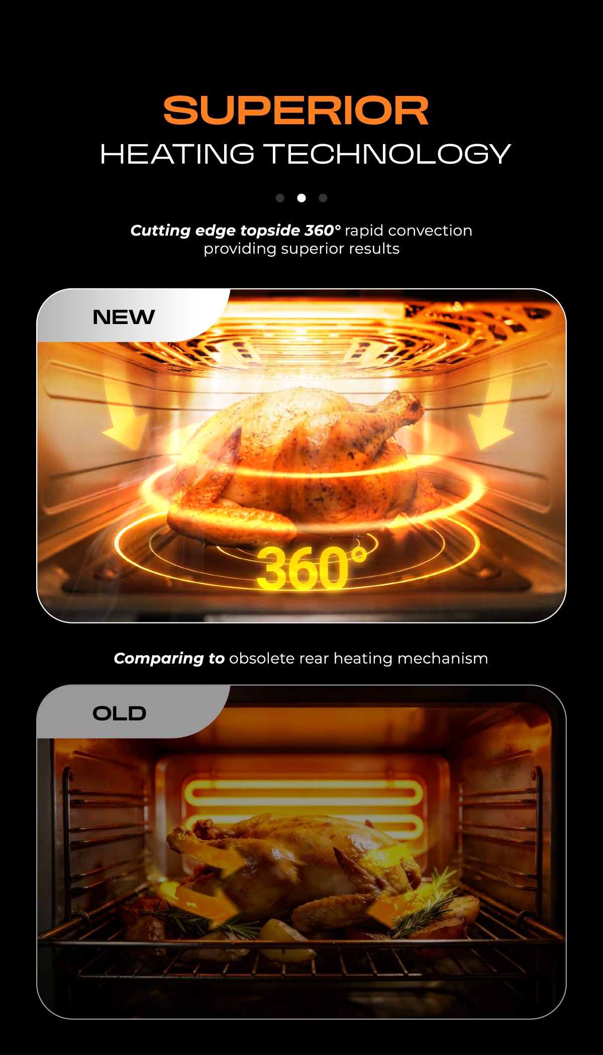 - TOP HEATING technology providing a 360 degree complete heating mechanism compared to old fashioned rear heating designs.