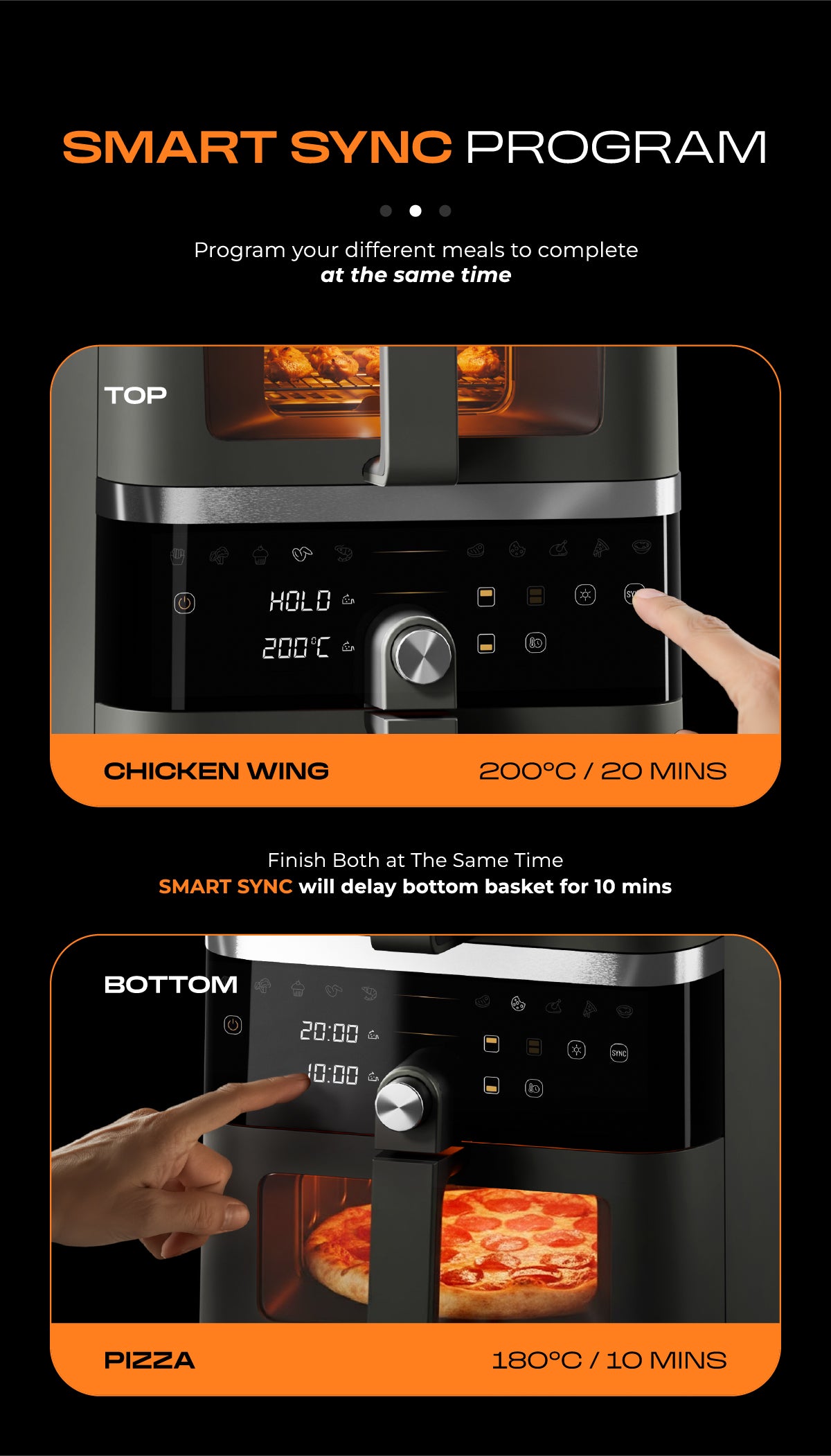 - SMART SYNC technology offers independent controls for efficiency, complemented by one-touch preset menus for the ultimate kitchen companion.