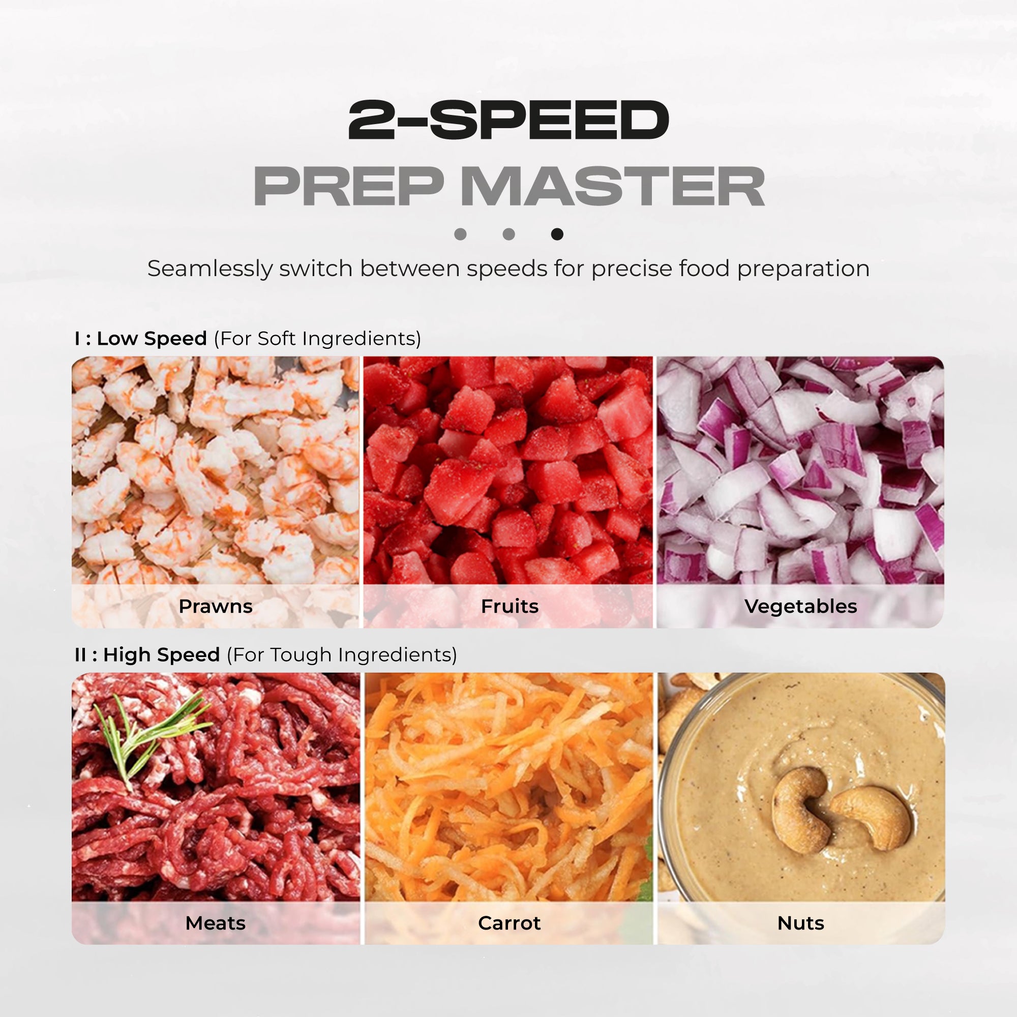 - Powerful 300W motor handles vegetables, fruits, nuts, and meats with ease, making daily food prep quick and efficient.meats with ease, making daily food prep quick and efficient.