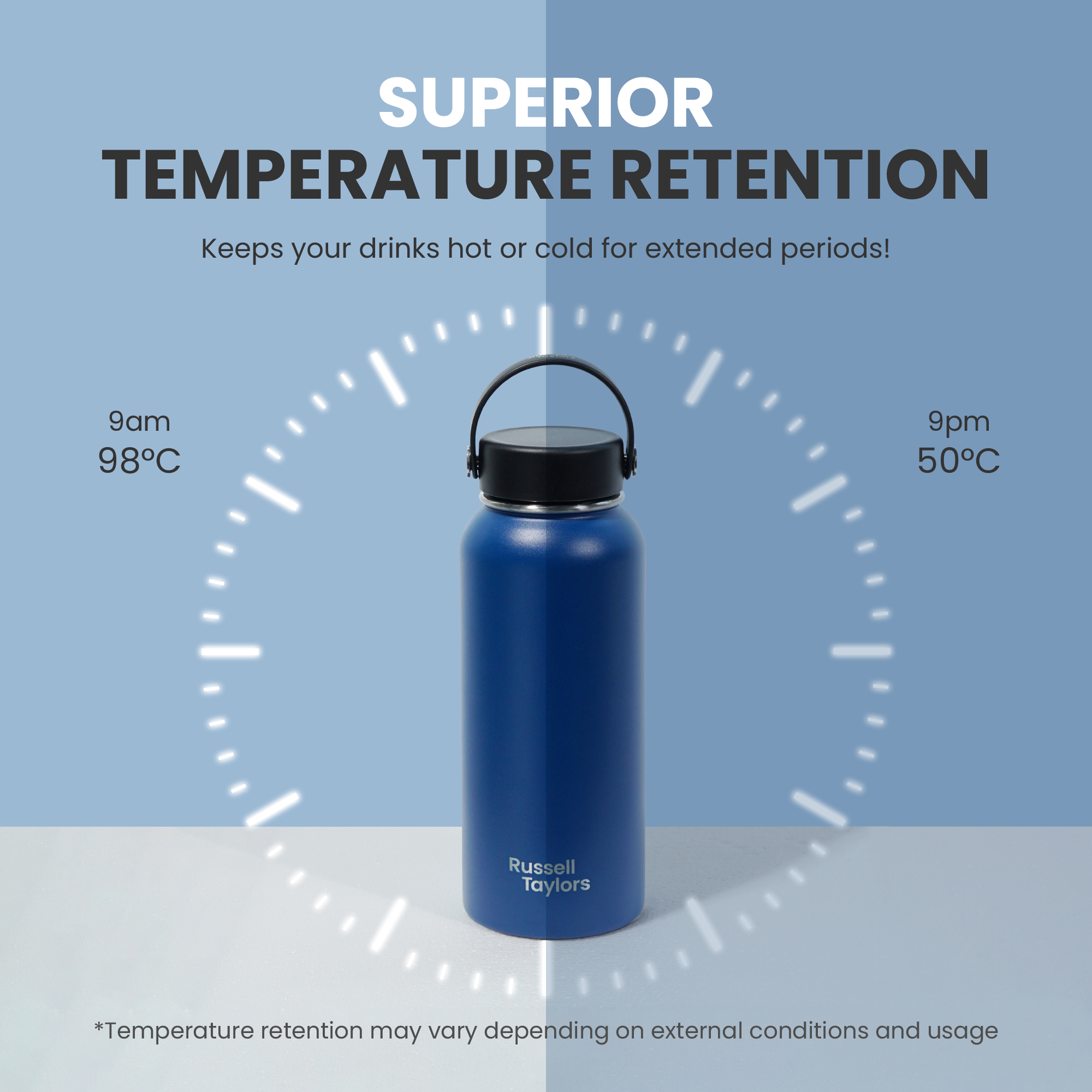 Russell Taylors HydroXL Tumbler Water Bottle (950ml/32oz) - BPA-Free, SS304, Temperature Retention, Leakproof