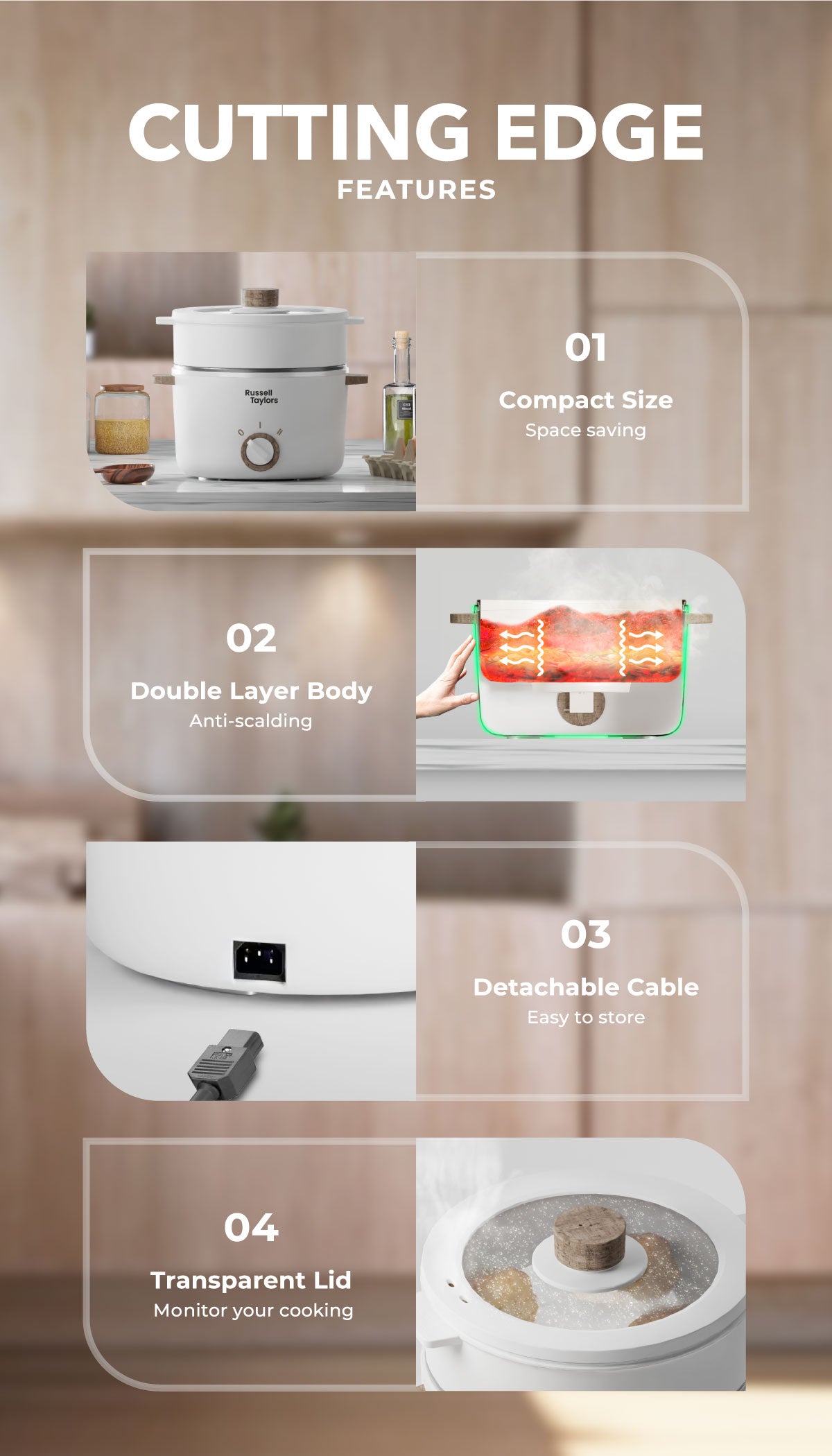 - This cooker uses an upgraded full heating plate which keeps your food heated evenly and longer. Compared to conventional pots, this non stick coating is more durable making it easier to cook and taste different types of food.