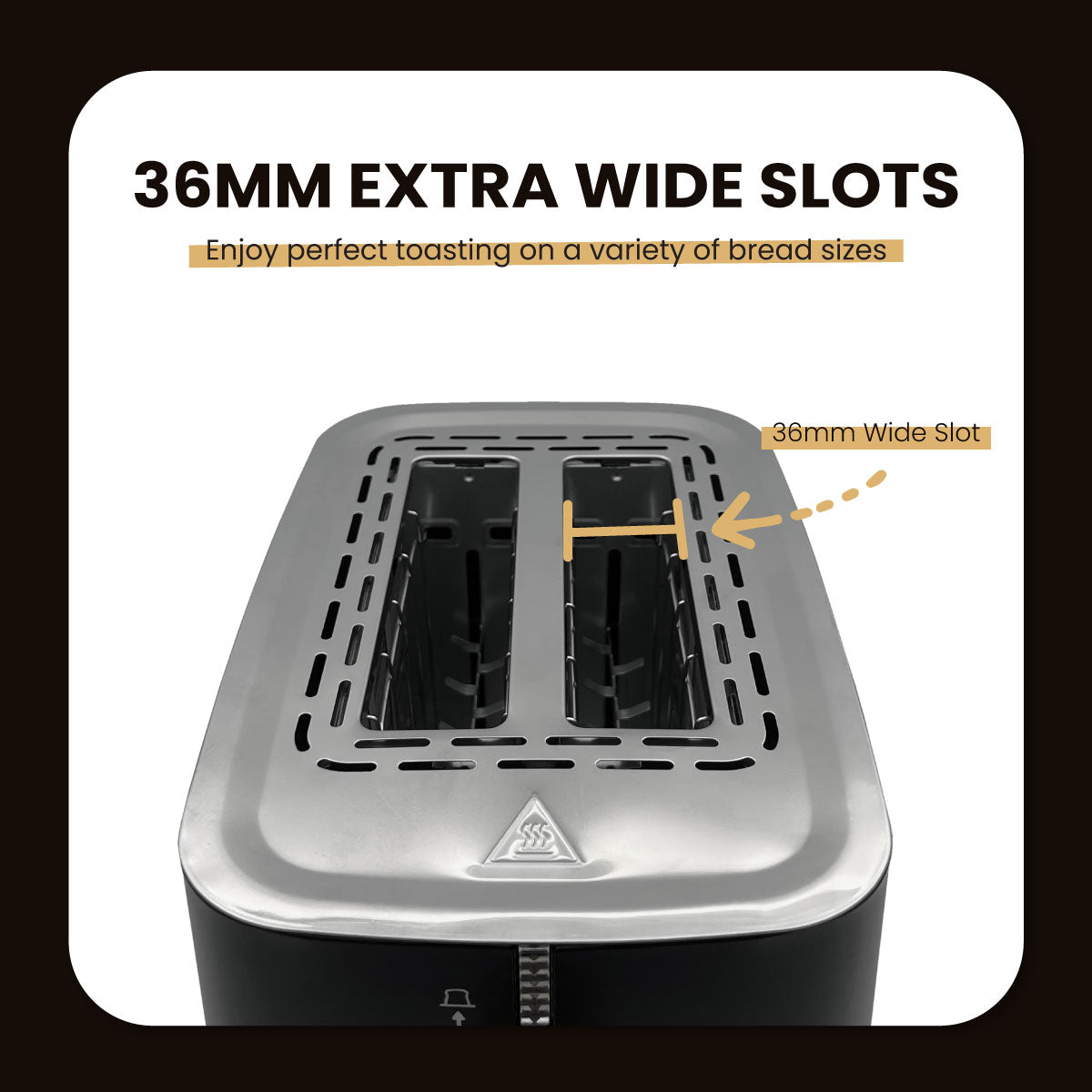 - Cleaning our 2-slot toaster is a breeze! With a convenient drop-down crumb tray, you won't have to waste any time cleaning up after yourself. The sleek finish makes wiping down the bread toaster a piece of cake.
