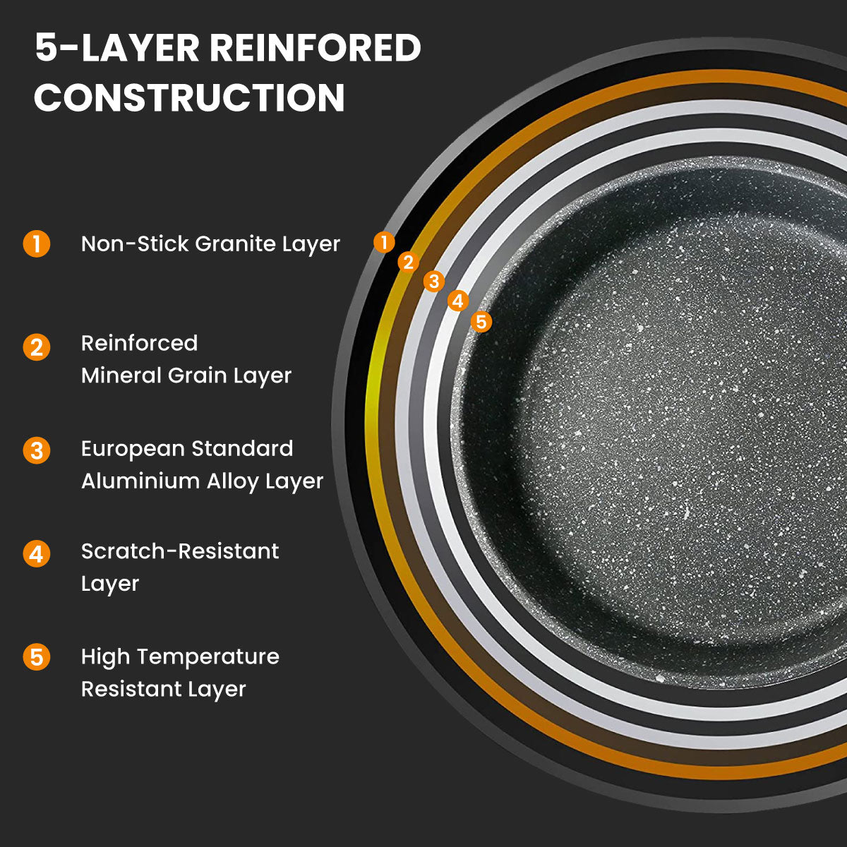 - HIGH STANDARDS: Extra thick forged aluminum construction combined with a stainless steel base for superior durability and cooking performance, always anti-abrasion and scratch-resistant.