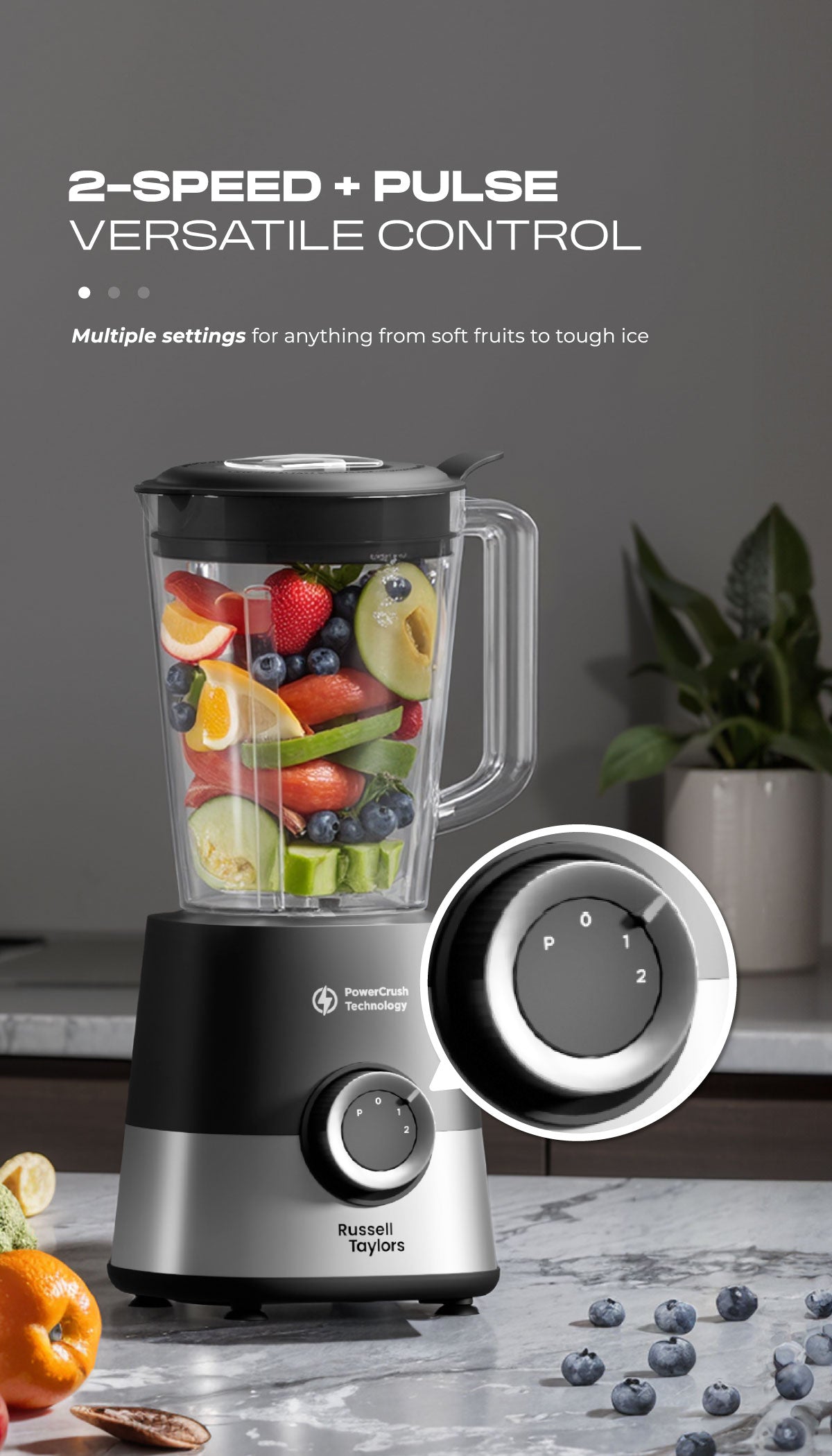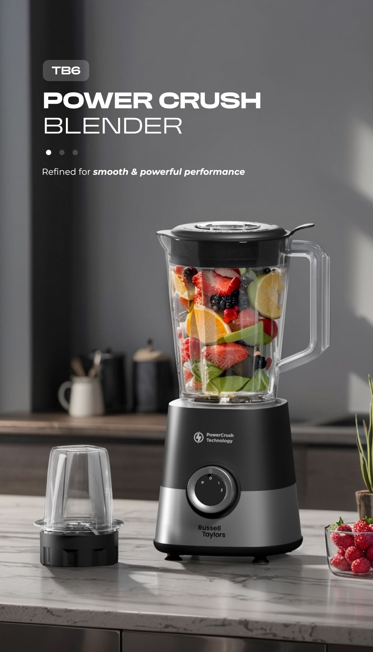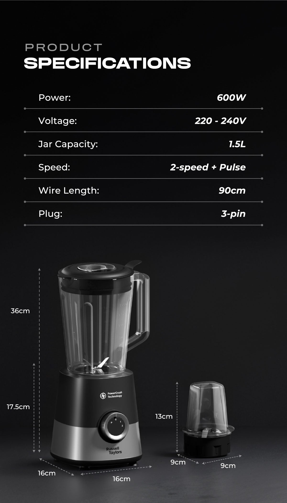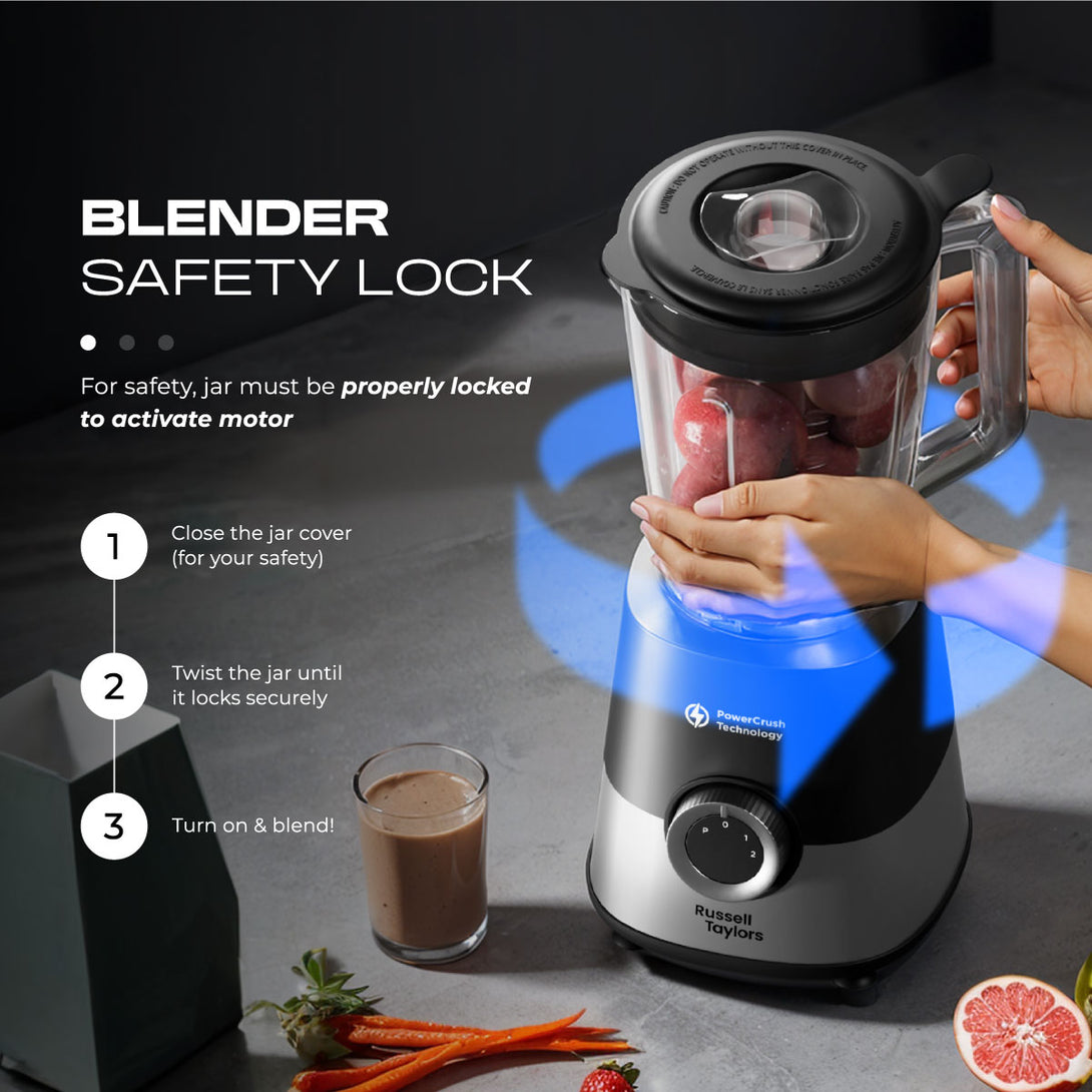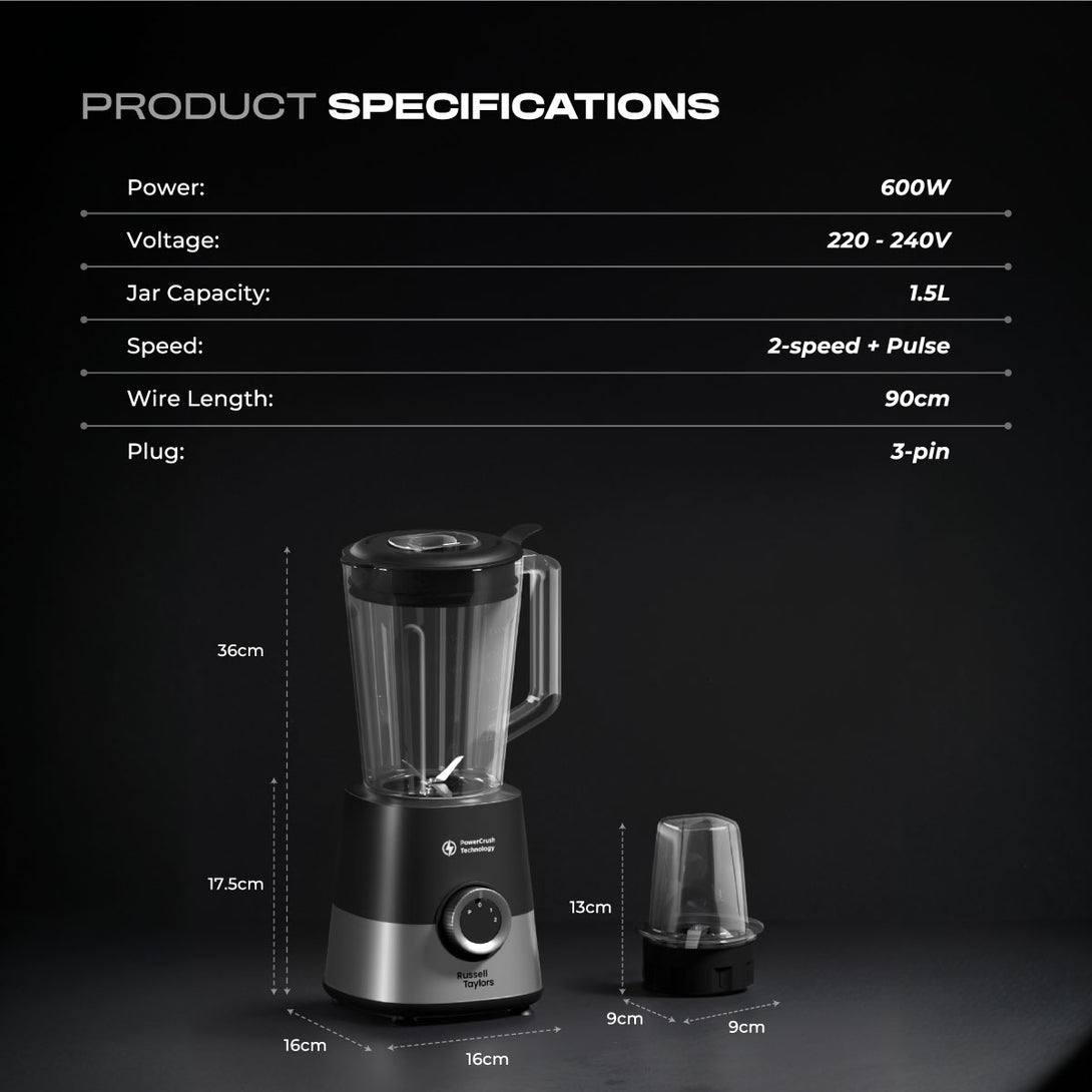 Russell Taylors PowerCrush Blender 1.5L Plastic Jug with Grinder 600W TB6