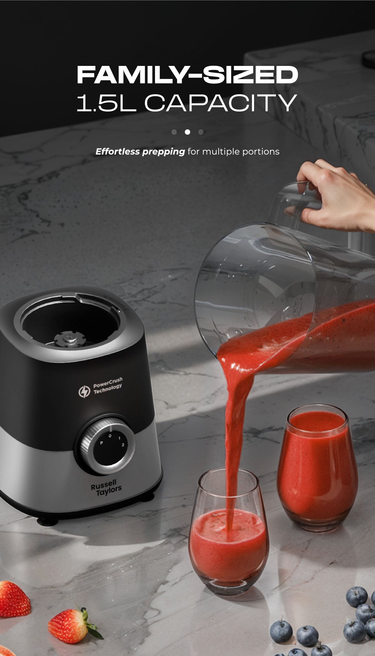 - The 1.5L jar offers generous capacity for family meals or meal prep. Made from durable, food-grade material, it’s lightweight, tough, and easy to pour.