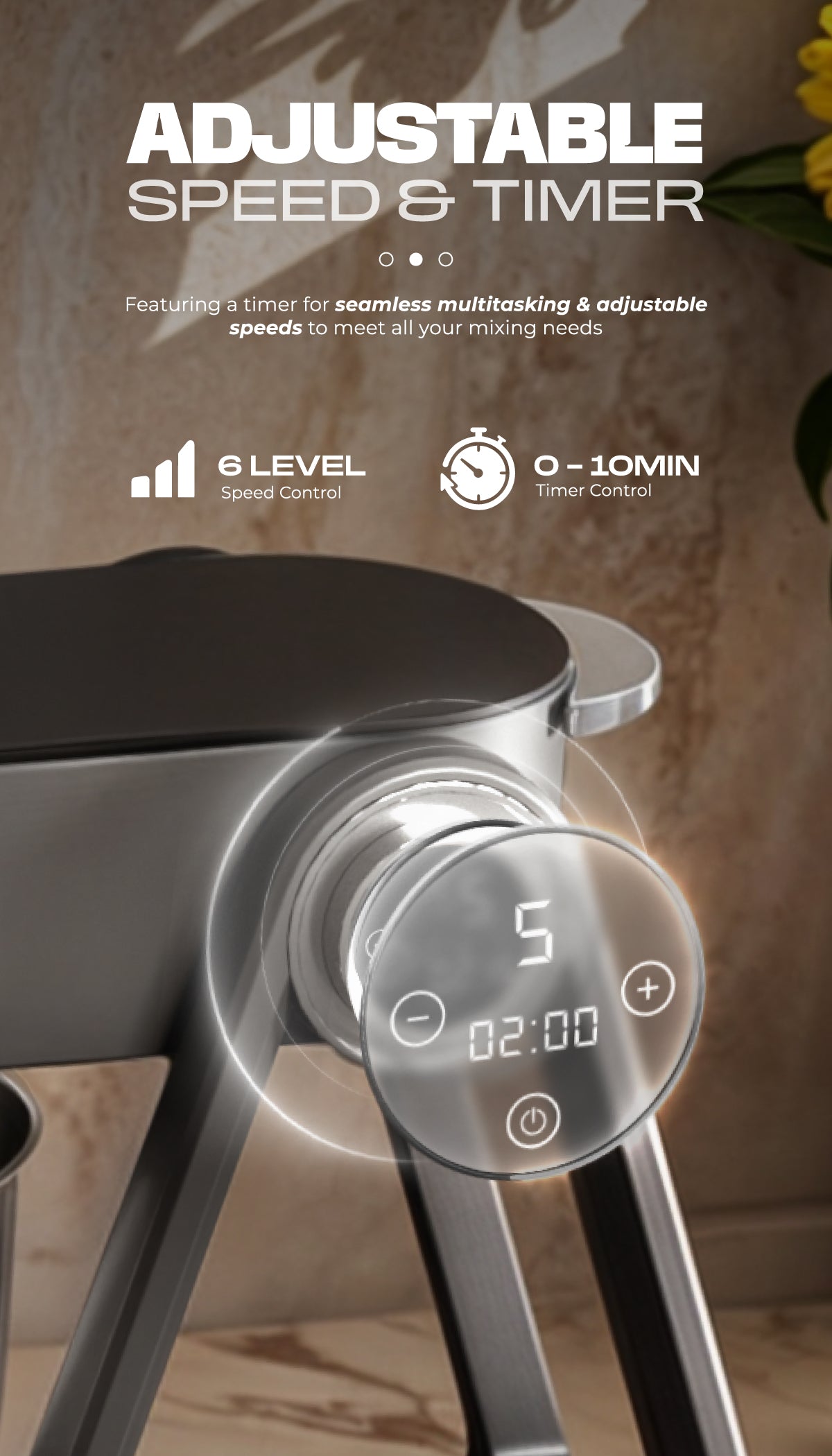 - High-performance pure copper motor and sturdy die-cast body, plus 6 speed options to unlock new taste buds.