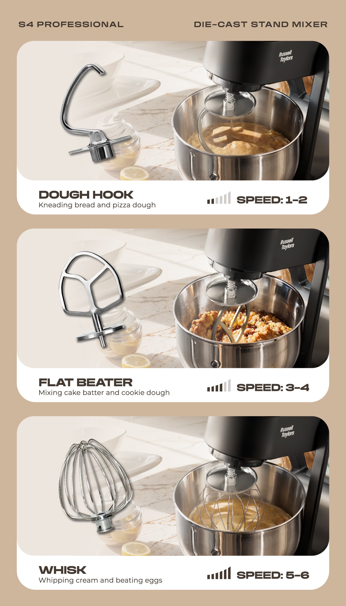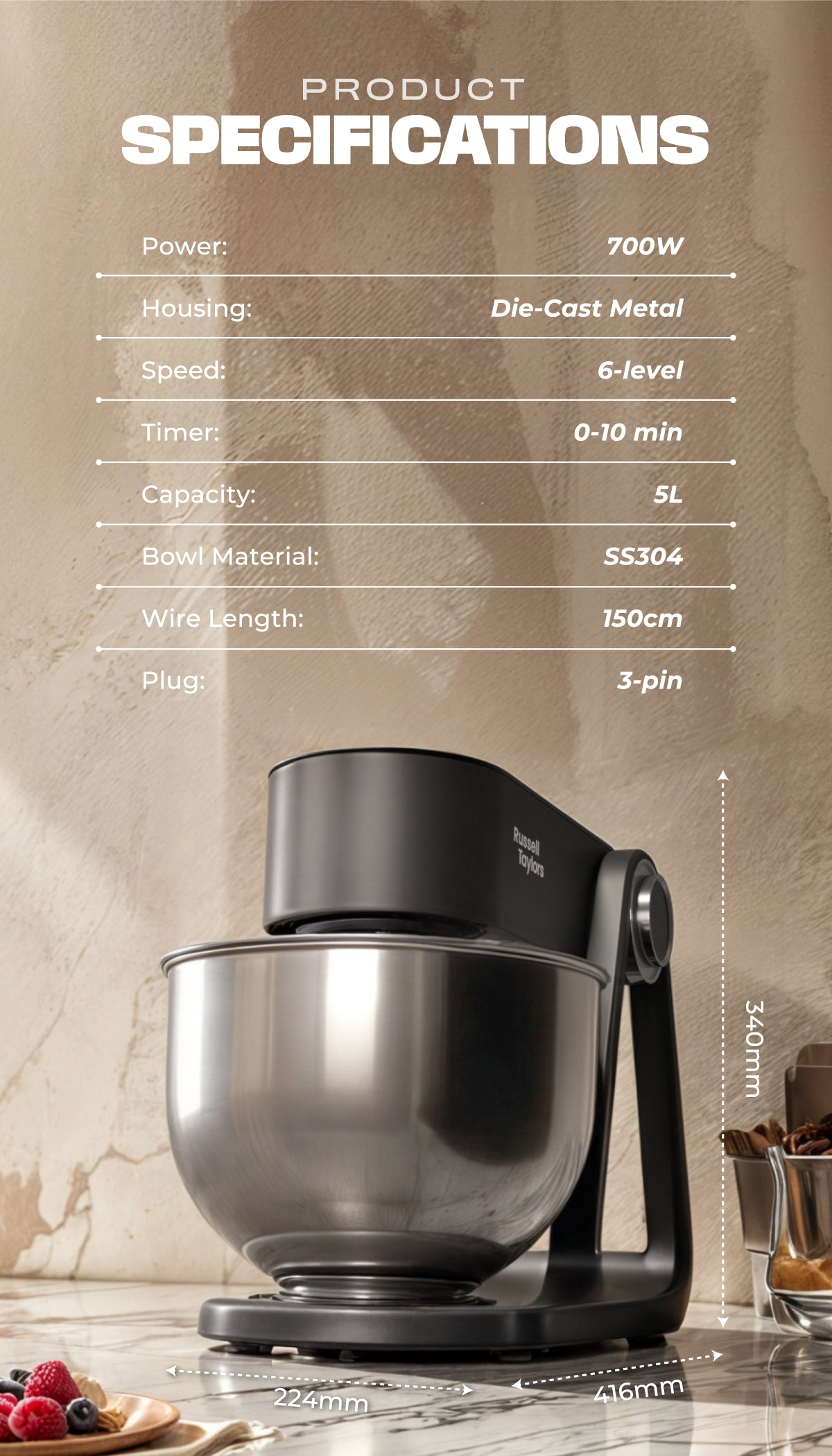 Russell Taylors Professional Die-Cast Stand Mixer 5L S4