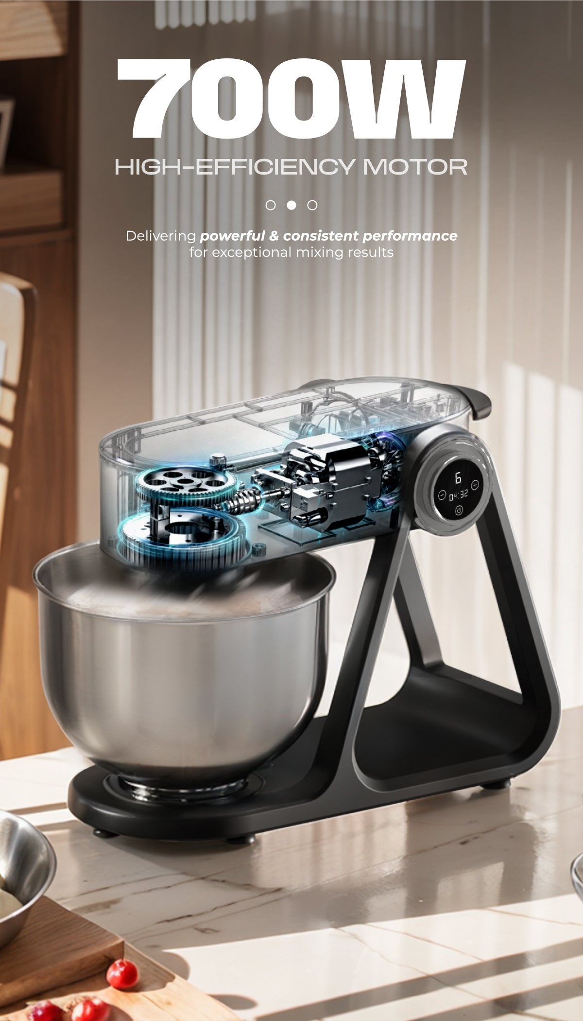 - The tilt-head design allows easy access to install and uninstall the bowl and accessories.