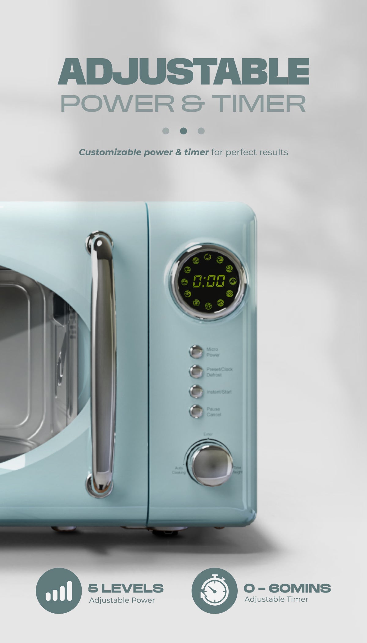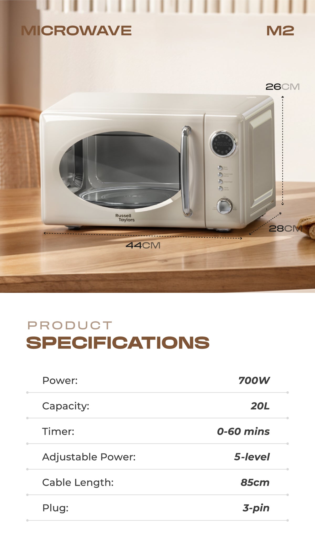 - This 700W high-powered microwave with a 20L capacity delivers consistent cooking power for even results and delicious flavors.