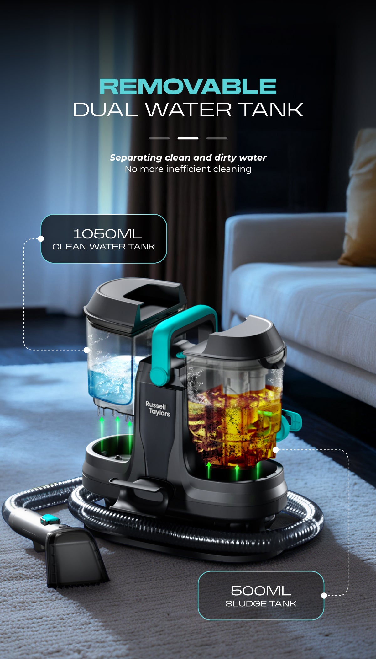 - Large 1050ML Clean Water Tank – Fewer refills for longer, uninterrupted cleaning. Transparent design for easy monitoring.